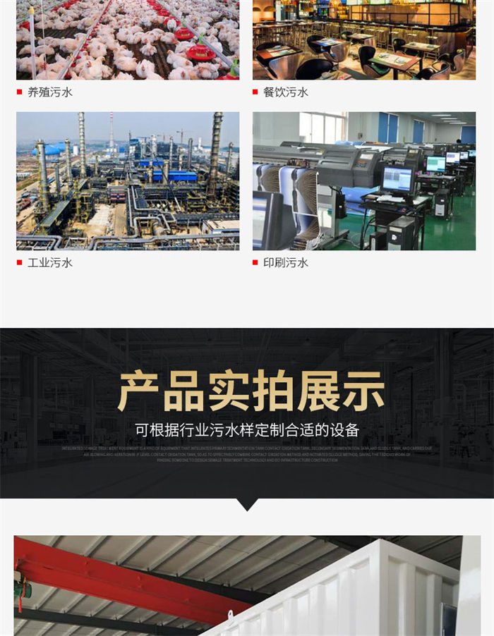 一體化污水處理設備主要是指屠宰廢水、日常生活中廚房、衛生間、淋浴房、洗衣房等生活設施中排出的廢水,由于其中含有泥沙、油脂、皂液、食物屑、病菌、雜物等物質,體現在水質指標上,即生化需氧量(BOD5)、化學需氧量(COD)、懸浮物(SS)含量高,氮、磷含量高,富營養化。若不經處理,直接排入水體(江、河、湖、海和地下水)和土壤,將使水體和土壤中有機物濃度過高,而使水體及土壤富營養化。